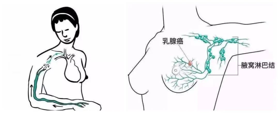 主要是由于乳腺癌手术、放疗等治疗破坏了淋巴管路,导致淋巴液回流不畅,使大量富含蛋白质的淋巴液滞留在组织间隙无法正常输送,从而导致患侧手部、臂部以及胸部的肿胀。
