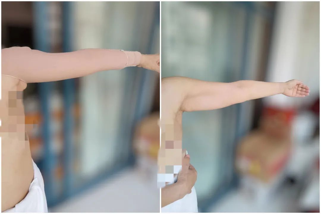 经过两周的治疗与居家自我锻炼后,患者惊喜地说道:“我能感觉到手臂不紧绷了,有种放松的感觉!”
