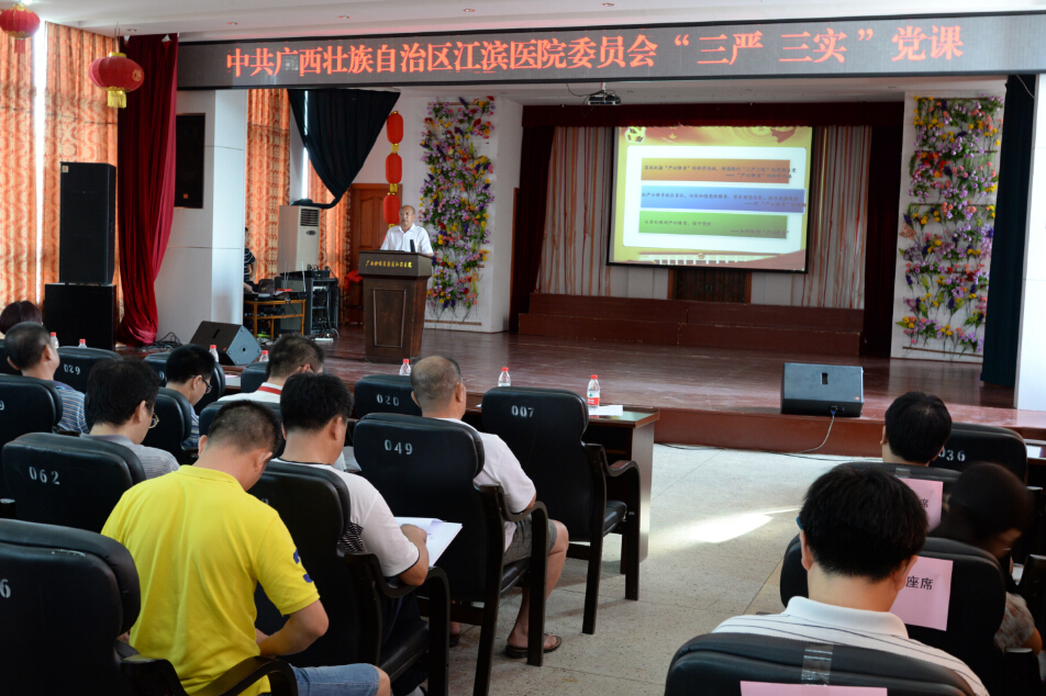 党性教育夯实作风。2015年6月30日下午,院党委召开“三严三实”专题党性教育课,医院全体党员和中层以上干部近500人参加。党委胡德宏书记解读了“严以修身、严以用权、严以律己,谋事要实、创业要实、做人要实”的深刻涵义和重大意义。指出了习近平总书记“三严三实”的重要指示是全党改进作风的再启程、再出发。要求医院全体党员和中层干部要始终以“三严三实”的标准要求自己,做到心中有戒尺,有约束,有规矩,务实奋进,扎实做好本职工作。自觉践行群众路线,达到自我净化、自我完善、不断提高,以实际行动推动医院科学发展。