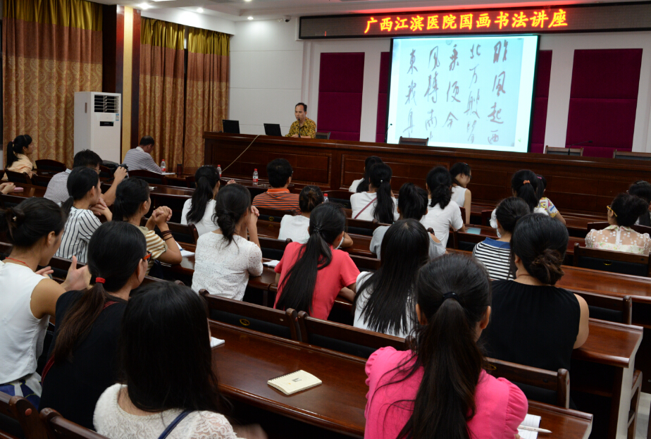 书画讲座传承国粹。自治区卫生计生文联甘文锋等书画家受邀为医院党员和职工讲解书法国画知识。讲座从商代殷墟的甲骨文到繁荣唐宋的行书、楷书,历数各朝代书法大家及其名作,声情并茂地为参加讲座的学员解说了书法的形成、用具材料和书写技巧,带领大家一起欣赏体会书法创作的魅力。随后又从传统中国画的纸墨、技法、构图、意境入手,辅以大量名家画作,向学员们展示了一部恢弘的国画史。参加讲座的学员不仅欣赏到了国画中“逸品”、“神品”、“妙品”和“能品”,还对中国传统文化有了更为深邃的体悟,深刻地感受到了中国书画之美,中国历史之厚重,古文化之深远。