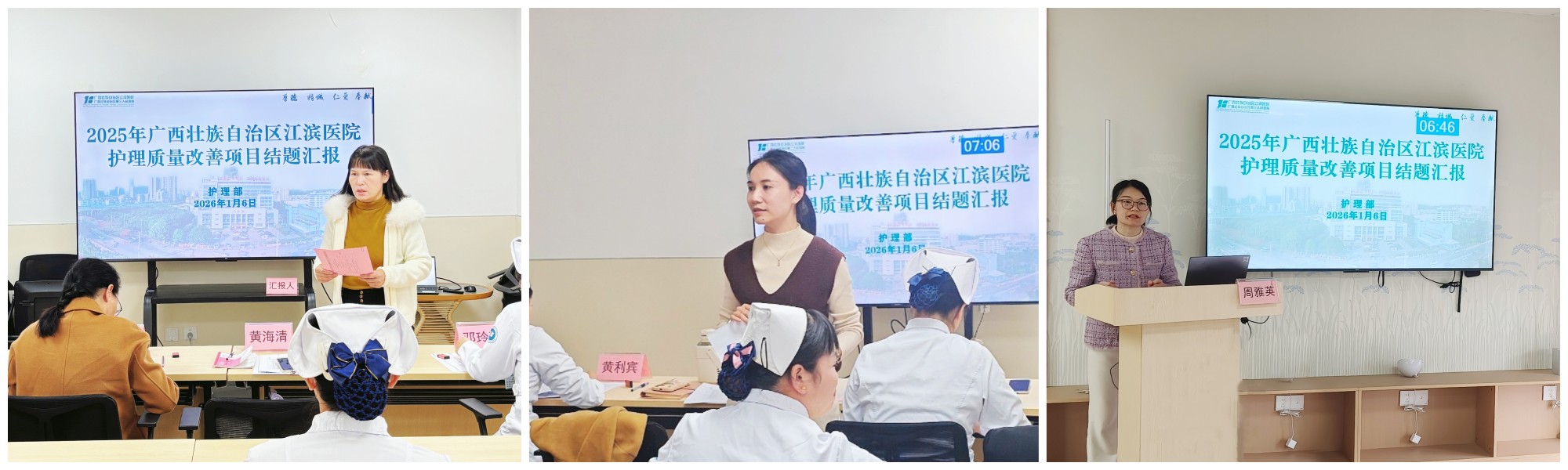 2026年1月6日下午,广西江滨医院(自治区第三人民医院)护理部组织的2025年度护理质量改善项目结题评审工作圆满结束。本次评审由护理部副主任黄海清、叶真凤、周雅英等12名专家担任评委,进行现场评议与指导。